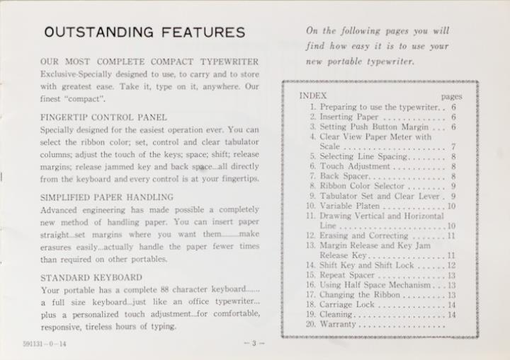 Next to literature on the history of technology, of the typewriter and the office, the Archive holds patent letters, textbooks and instruction manuals as well as historical postcards, letters, photographs and various kinds of advertising (leaflets and brochures, advertising stamps, newspaper ads, posters and signs, promotional gifts).