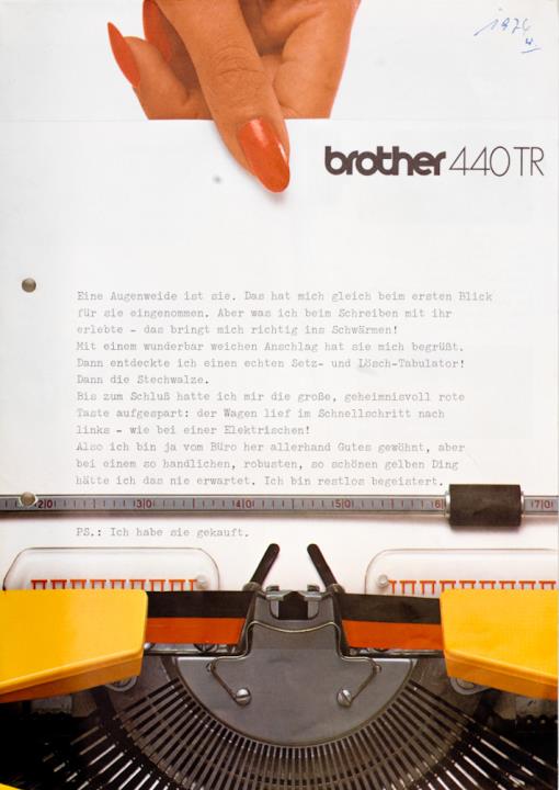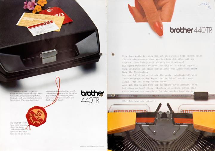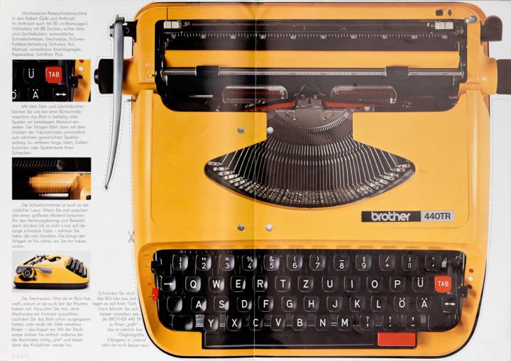 Faltprospekt für Schreibmaschine Brother 440 TR Datum handschriftlich vermerkt