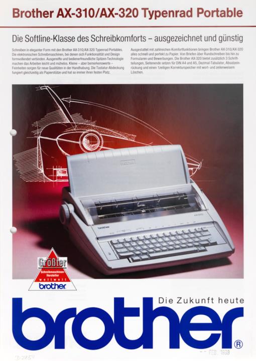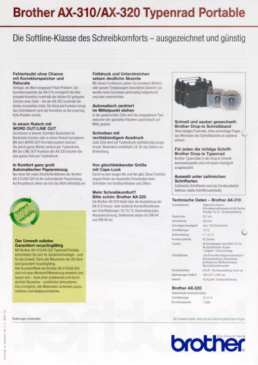 Prospekt für elektrische Schreibmaschine AX-310, AX-320 Die Softline-Klasse des Schreibkomforts