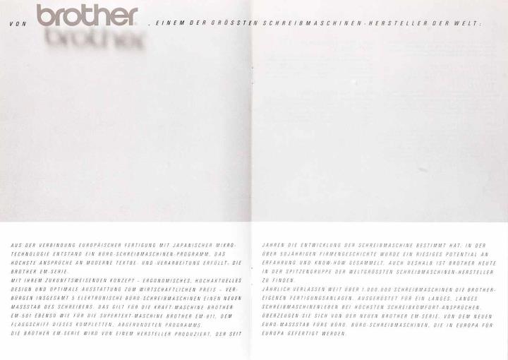 Prospekt für Schreibmaschine Brother EM Nr. 86.03.2 BRIO 50