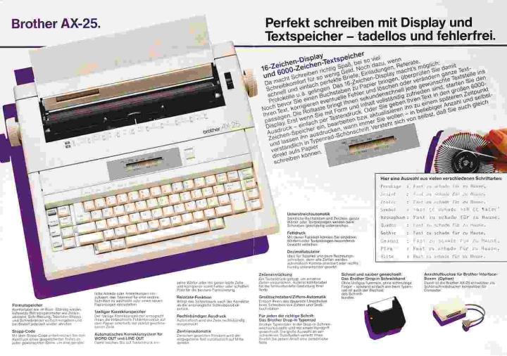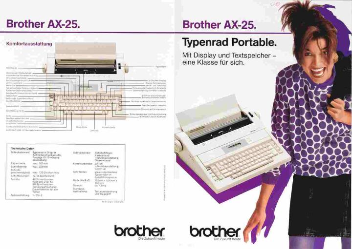 Faltprospekt für Schreibmaschine Brother AX-25 Mit Display und Textspeicher - eine Klasse für sich Nr. 88.08.1BRIO100