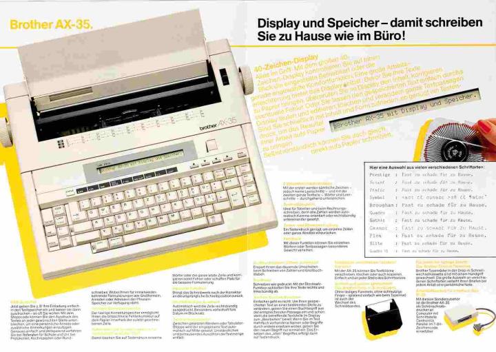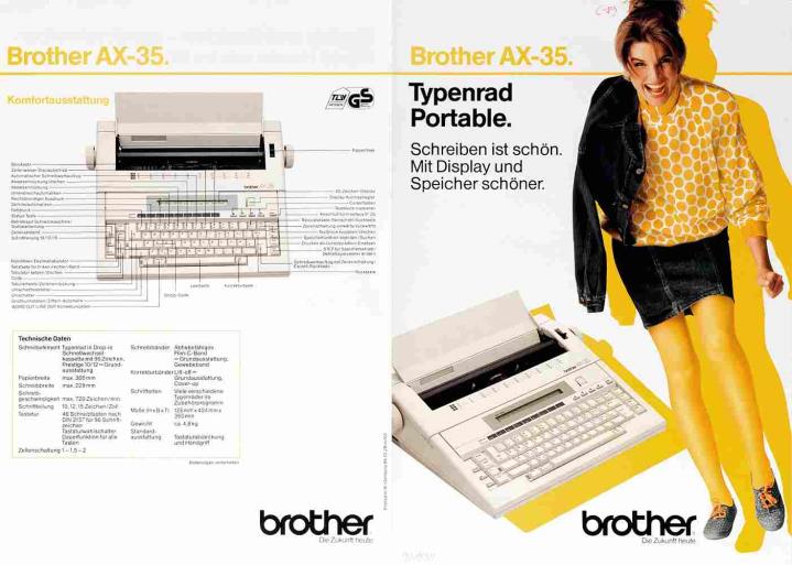 Faltprospekt für Schreibmaschine Brother AX-35 Schreiben ist schön. Mit Display und Speicher schöner Nr. 88.10.2Brio100