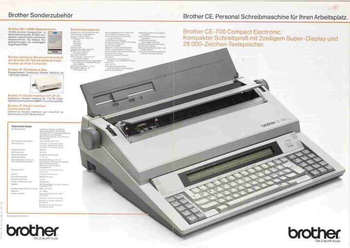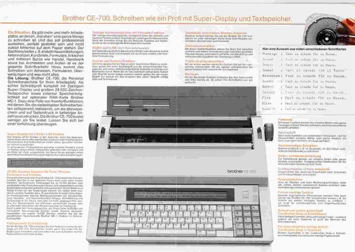 Faltprospekt für elektrische Schreibmaschine Brother CE-700 Nr. 88.12.1 VST 100