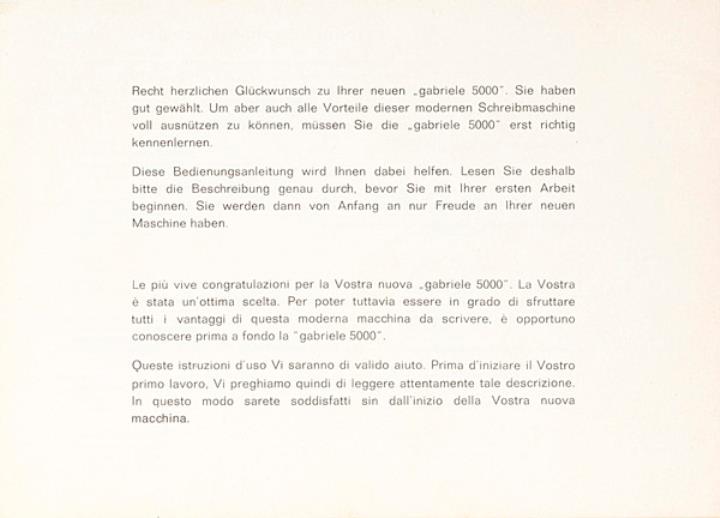 Bedienungsanleitung viersprachig für Schreibmaschine Triumph Gabriele 5000 Nr. 122/2/1070/9