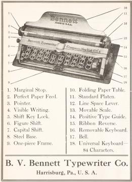 Die Bennett Schreibmaschine mit vollkommen sichtbarer Schrift
