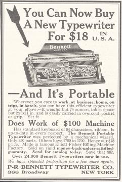 You can now buy a new typewriter for $18 in U.S.A. Bennett