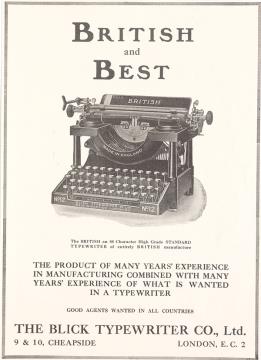Werbeanzeige für Schreibmaschine British Mod. 12 (Blick Typewriter Co.) monochrom