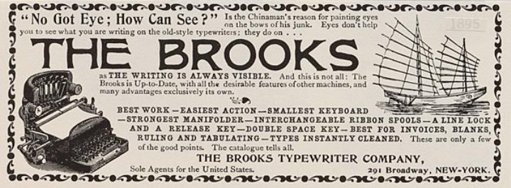 Werbeanzeige für Schreibmaschine Brooks monochrom