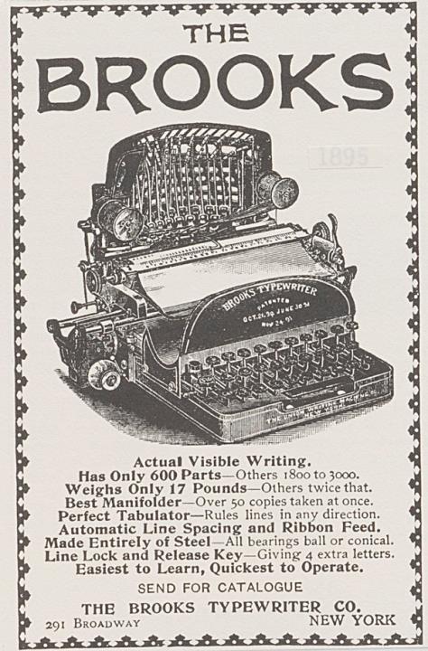 Werbeanzeige für Schreibmaschine Brooks monochrom