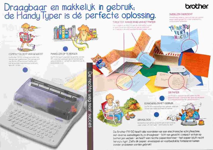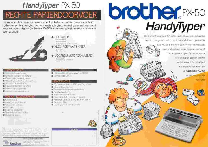 Faltprospekt in niederländischer Sprache für Schreibmaschine Brother PX-50