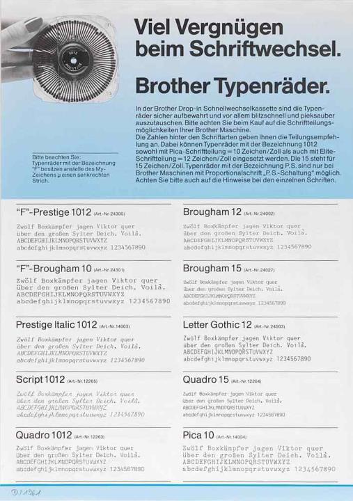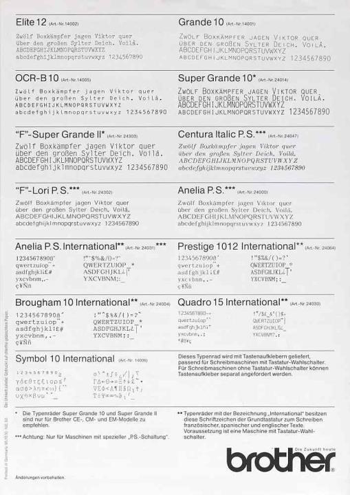 Schrifttypenprospekt für Schreibmaschine Brother Nr. 95.10.10 NIE 50