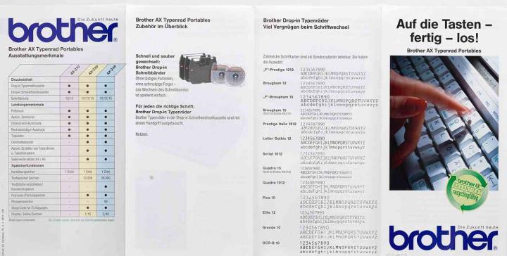 Faltprospekt für Schreibmaschine Brother AX 210, AX 230, AX 240 Nr. 93.1.1 BRIO 200