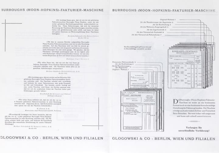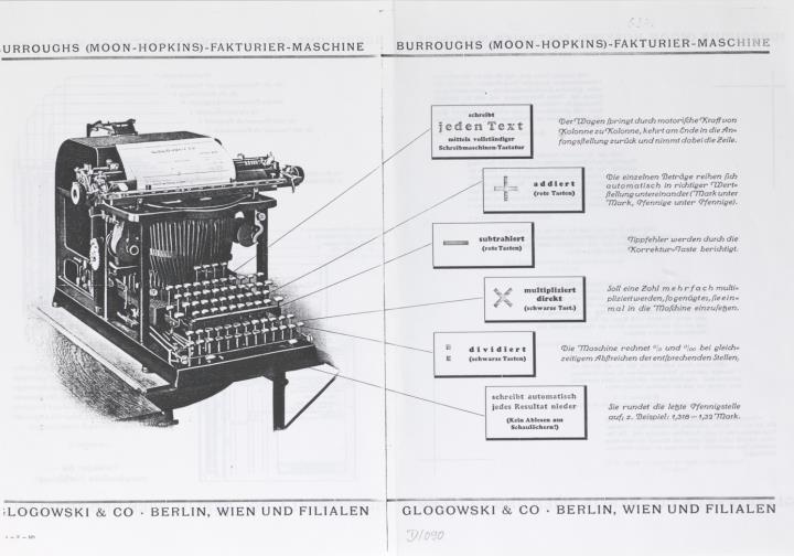Prospekt für Schreib- und Fakturiermaschine Burroughs Moon Fotokopie