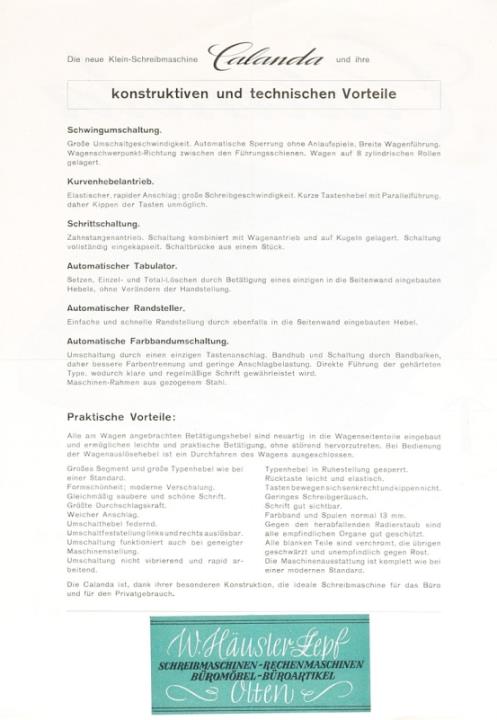Prospekt für Schreibmaschine Calanda Nr. 277