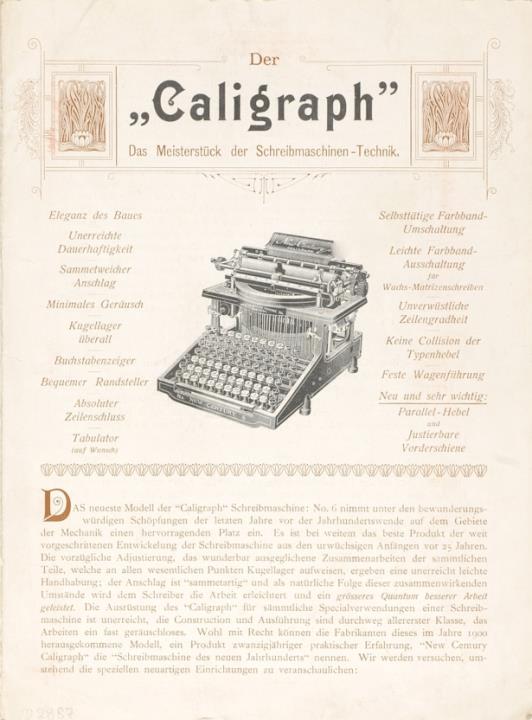 Prospekt für Schreibmaschine Caligraph Das Meisterstück der Schreibmaschinen-Technik