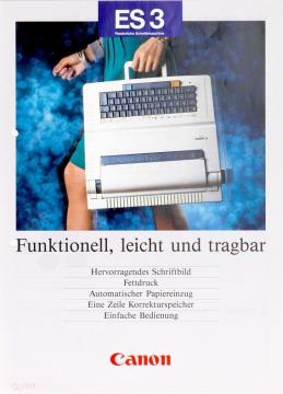 Prospekt für elektrische Schreibmaschine Canon ES3-II, ES23-II Funktionell, leicht und leistungsstark