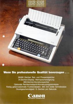Prospekt für elektrische Schreibmaschine Canon ES25 Wenn Sie professionelle Qualität bevorzugen...