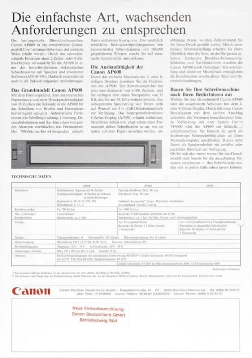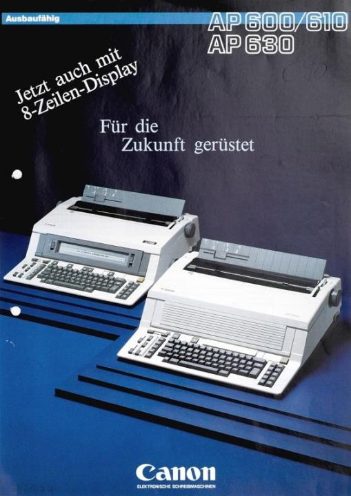 Prospekt für elektrische Schreibmaschine Canon AP600/610, AP63 Für die Zukunft gerüstet