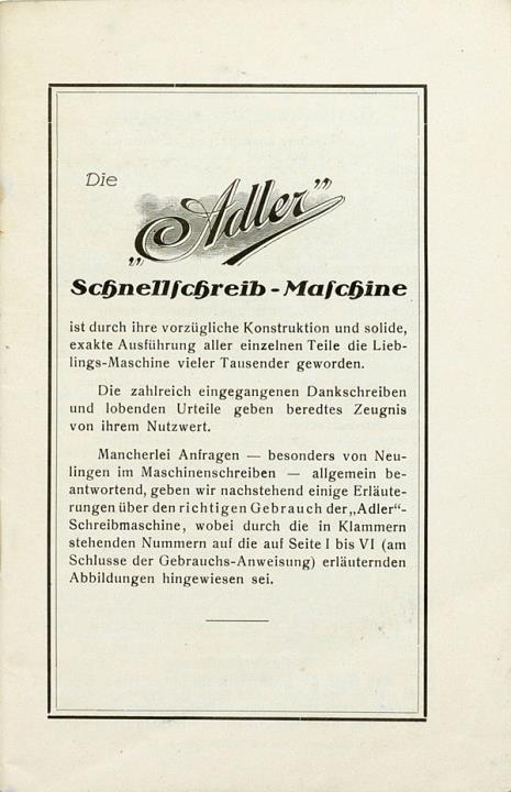 Adler Schreibmaschine Gebrauchsanweisung
