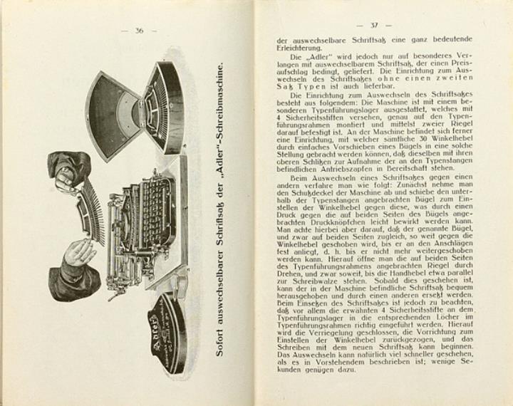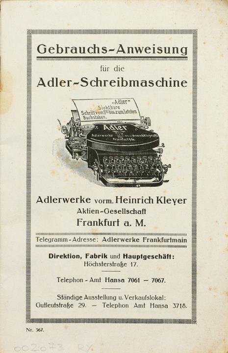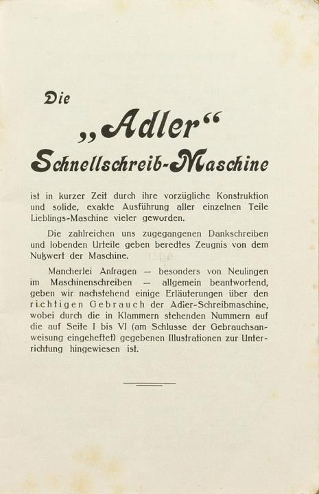 Gebrauchs-Anweisung für die Adler Schreibmaschine