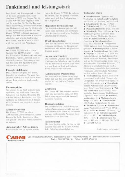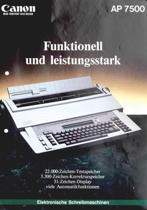 Prospekt für elektrische Schreibmaschine Canon AP7500 Funktionell und leistungsstark