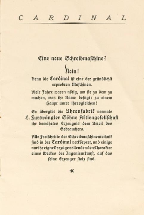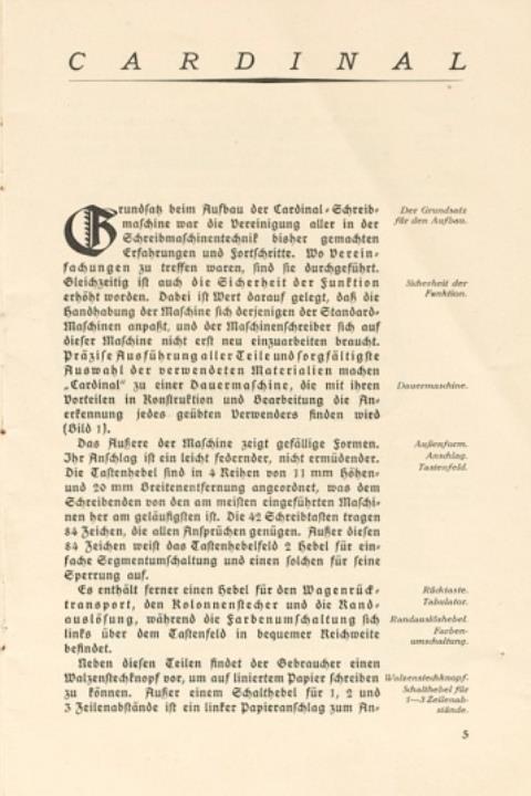 Bedienungsanleitung für Schreibmaschine Cardinal Grafik: H. Schütz Stuttgart