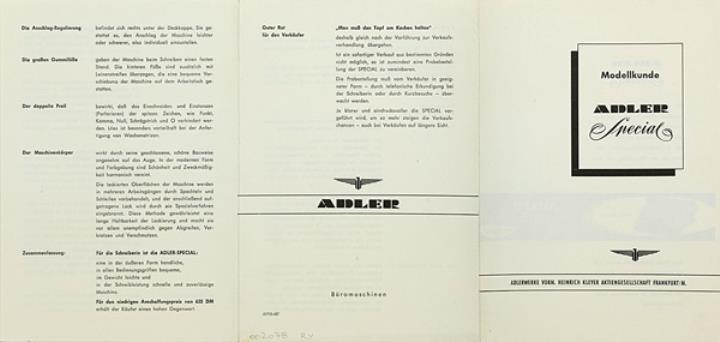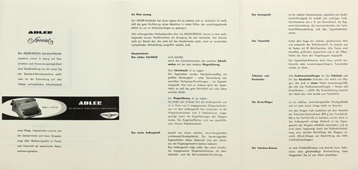 Prospekt für Schreibmaschine Adler Special Nr. 01710/457