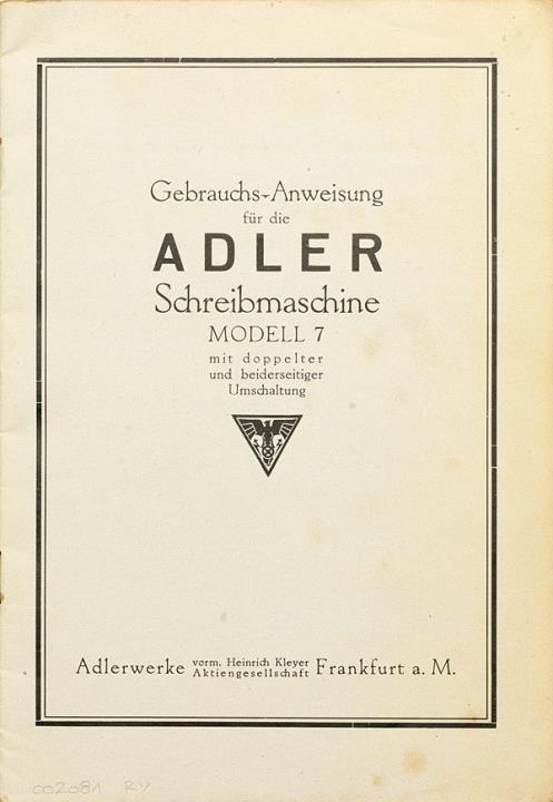 Bedienungsanleitung für Schreibmaschine Adler 7 Nr. 361 (VI.29.)10.