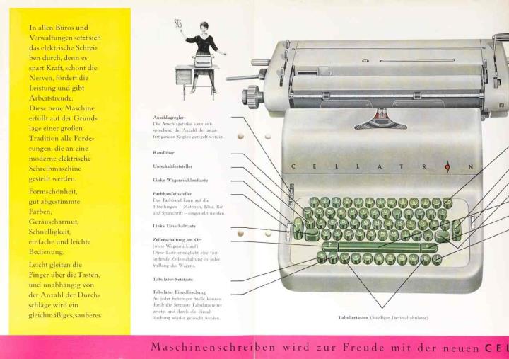 Faltprospekt für elektrische Schreibmaschine Cellatron SE5 schreibt so erfreulich leicht Nr. 111/29/1 Ag048/051/62