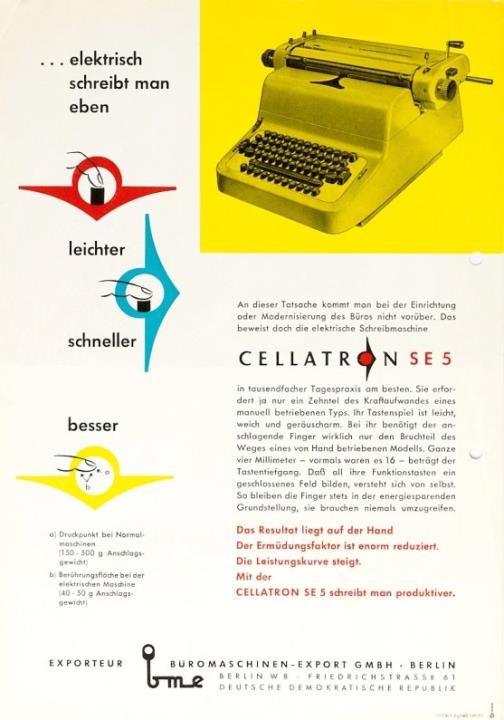 Prospekt für elektrische Schreibmaschine Cellatron SE5 Nr. 111/29/1 Ag048/248/61