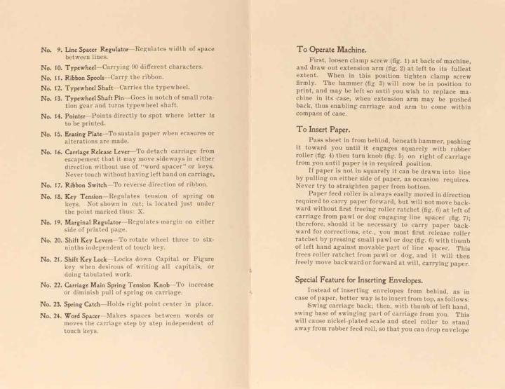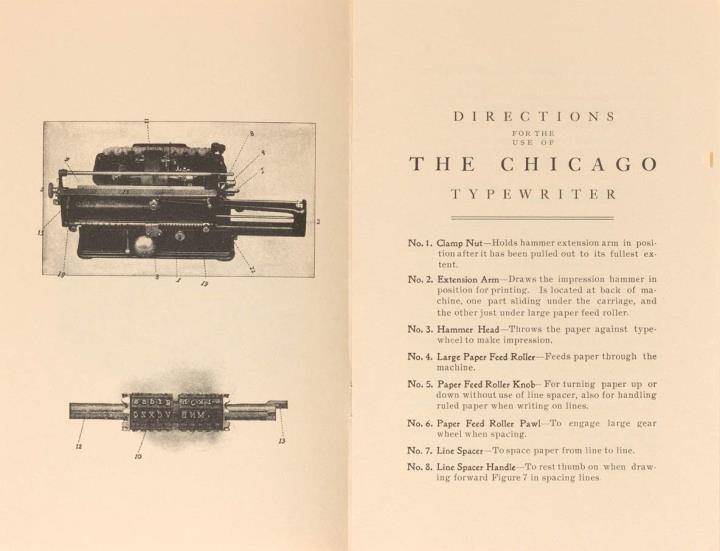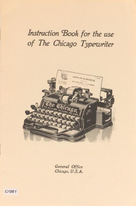 Bedienungsanleitung für Schreibmaschine The Chicago Antiquary Reprint number XC-H