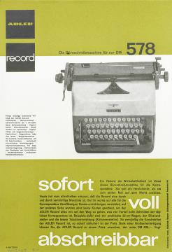 Faltprospekt für Schreibmaschine Adler record Ein Rekord fortschrittlicher Büromaschinentechnik Nr. A41/861/57