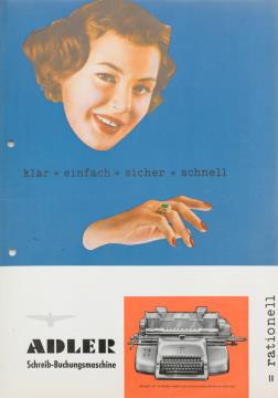 Faltprospekt für Schreib- und Buchungsmaschine Adler klar + einfach + sicher + schnell = rationell