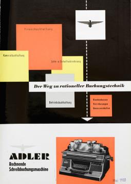 Prospekt für Schreib- und Buchungsmaschine Adler Der Weg zu rationeller Buchungstechnik Nr. A 11/258/6 mit Datumstempel versehen