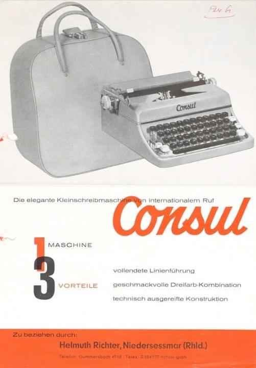Prospekt für Schreibmaschine Consul Die elegante Schreibmaschine von internationalem Ruf