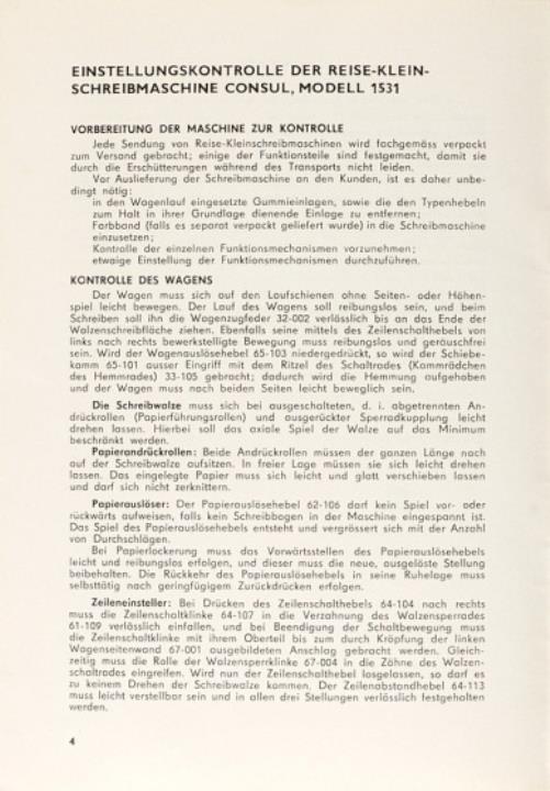 Anleitung zur Kontrolle und Einstellung der Kleinschreibmaschine Consul 1531