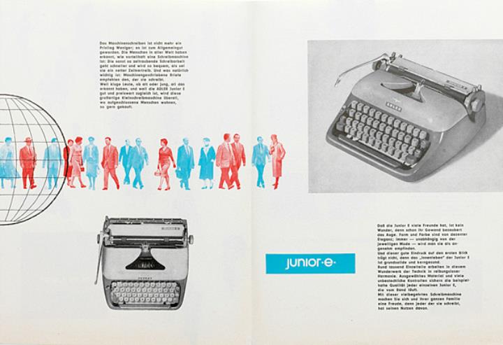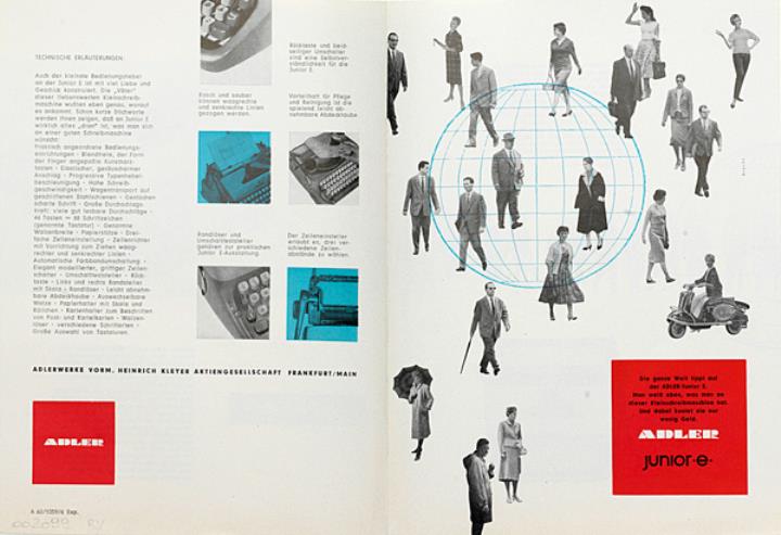 Faltprospekt für Schreibmaschine Adler junior e Nr. A 60/1059/6 Exp.