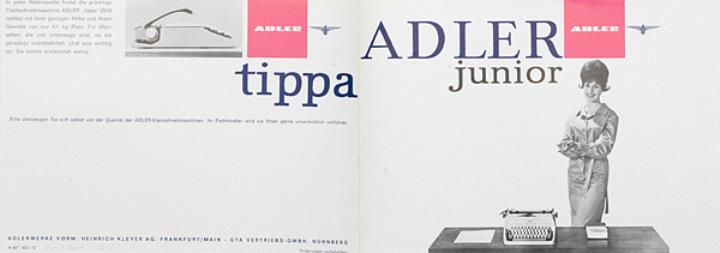 Faltprospekt für Schreibmaschine Adler Junior Nr. A 410/462/12