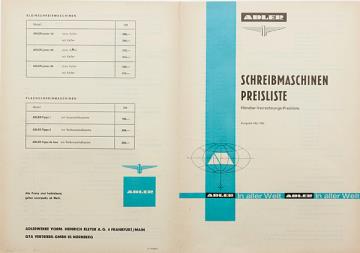 Preisliste für Schreibmaschinen Adler Händler-Verrechnungs-Preisliste Ausgabe Mai 1965 Nr. A 178/565/6
