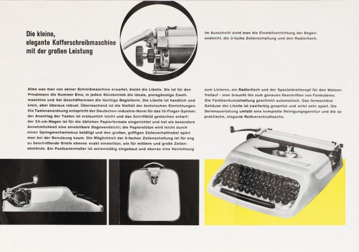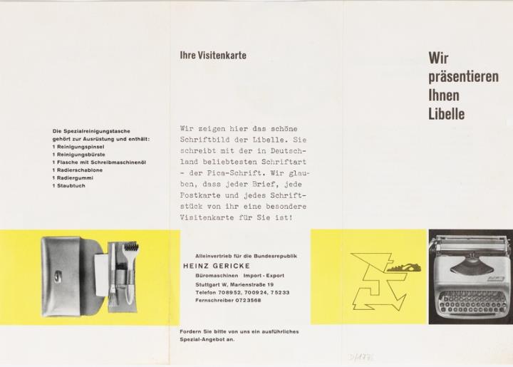 Next to literature on the history of technology, of the typewriter and the office, the Archive holds patent letters, textbooks and instruction manuals as well as historical postcards, letters, photographs and various kinds of advertising (leaflets and brochures, advertising stamps, newspaper ads, posters and signs, promotional gifts).