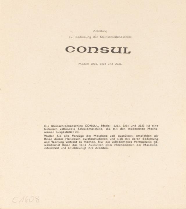 Anleitung zur Bedienung der Kleinschreibmaschine Consul Modell 2223, 2224 und 2233