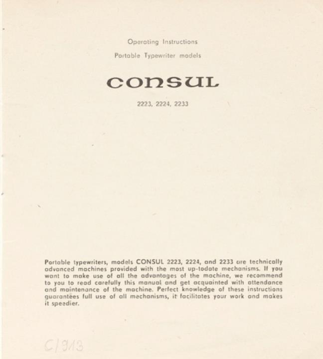 Bedienungsanleitung für Schreibmaschine Consul Operating Instructions Portable Typewriter models Consul 2223, 2224 und 2233