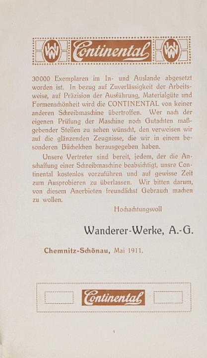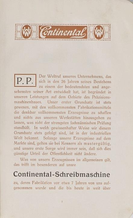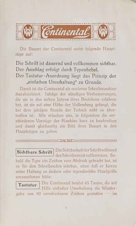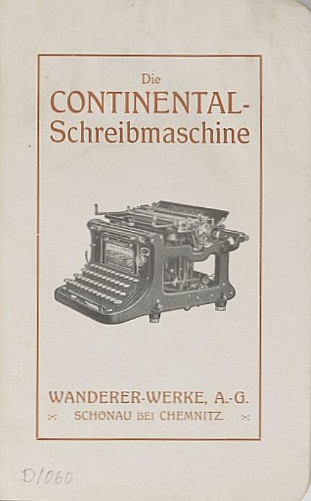 Prospekt für Schreibmaschine Continental, zwei Exemplare (eines fotokopiert, gebunden)