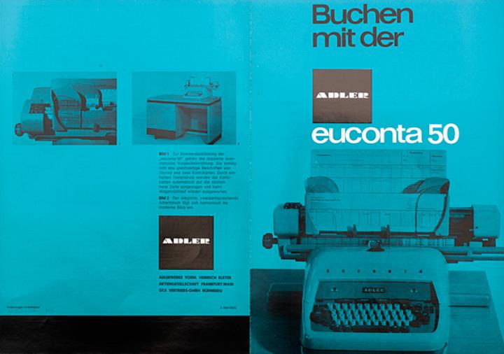 Faltprospekt für Schreib- und Buchungsmaschine Adler Euconta 50 Nr. A 515/1263/6