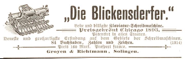 Werbeanzeige für Schreibmaschine Blickensderfer monochrom