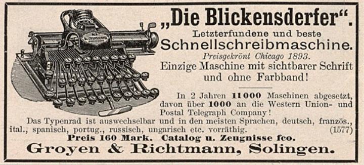 Werbeanzeige für Schreibmaschine Blickensderfer monochrom