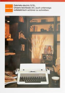 Prospekt für Schreibmaschine Adler gabriele electric S/SL Unsere leichteste Art, auch unterwegs vollelektrisch schöner zu schreiben Nr. A 01.86.01./1180/20./23