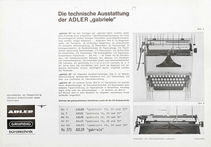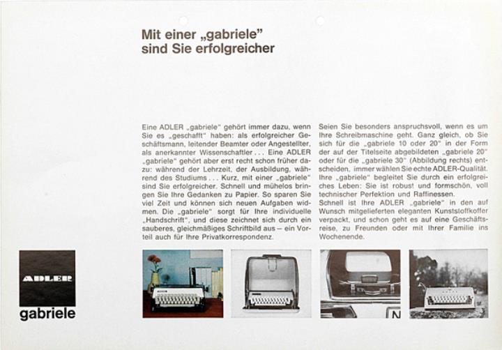 Faltprospekt für Schreibmaschine Adler gabriele Nr. A 677a/1267/6