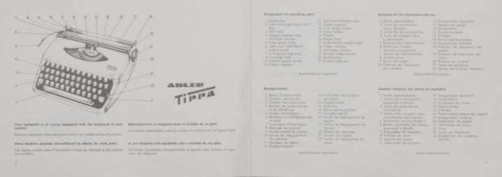 Bedienungsanleitung viersprachig für Schreibmaschine Adler Tippa Nr. A 422/263/17 engl, franz., span., port.