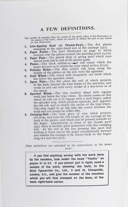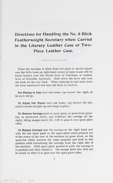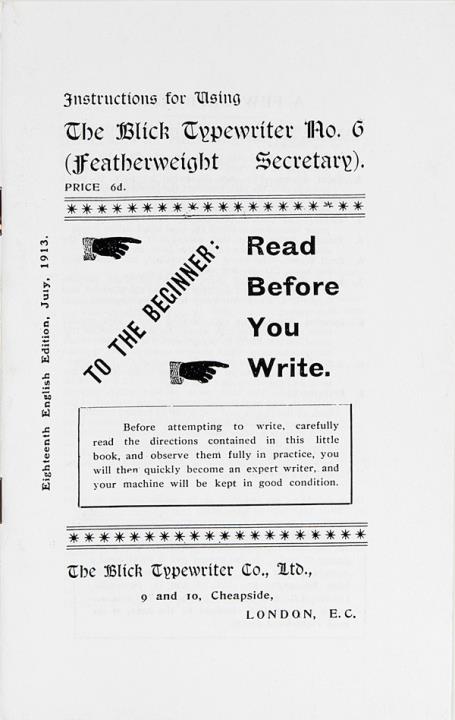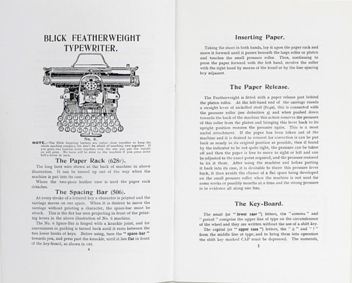Bedienungsanleitung in englischer Sprache für Schreibmaschine Blickensderfer No. 6 (featherweight secretary) Nachdruck